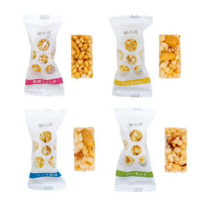 - 【岩・粟おこし10枚束セット】 ごま、大豆 【ミニおこしセット 16枚入】 ごま、大豆 【福の花 100g】 落花生、アーモンド、大豆 【浪の詩】 ごま、落花生、大豆 【ピーナッツそふと 105g】 落花生、小麦、大豆